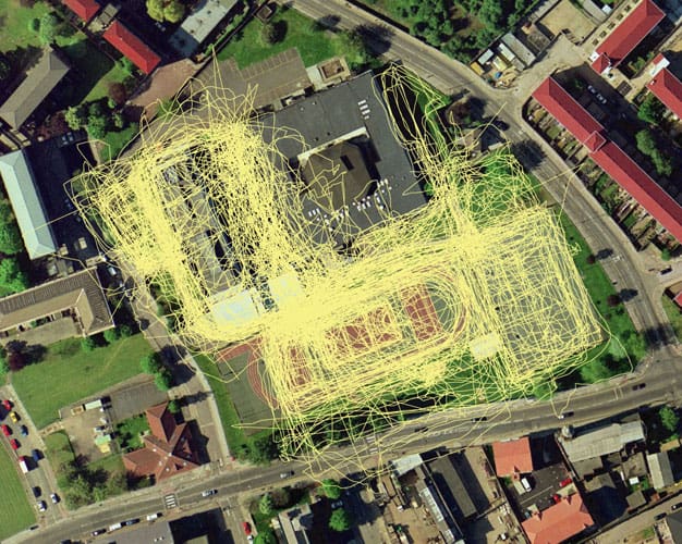 Jeremy Wood established the GPS Drawing Project to investigate physical mark-making with satellite navigation technology. His daily journeys are tracked to explore personal cartography in the form of sculpture, video and print.